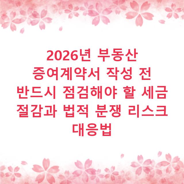 부동산을 증여할 때 계약서 하나로 평생 마음의 빚을 지는 경우가 많죠. 가장 가까운 가족 간이라도 명확하지 않은 조건이 5년, 10년 뒤 커다란 세금 폭탄과 가족 간 소송으로 이어지는 건 드문 일이 아니거든요. 2026년 상속세 및 증여세법 개정안이 시행되면서, 과거에는 문제 없이 넘어갔던 계약 조건들이 새로운 기준으로 재평가받고 있습니다. 단순한 양식 다운로드와 서명으로는 절대 해결되지 않는 실제 위험이 여기에 있네요.