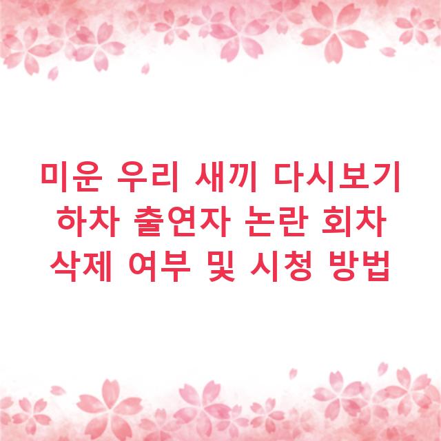 미운 우리 새끼 논란 회차 다시보기가 안 보이는 진짜 이유는 무엇인가요?